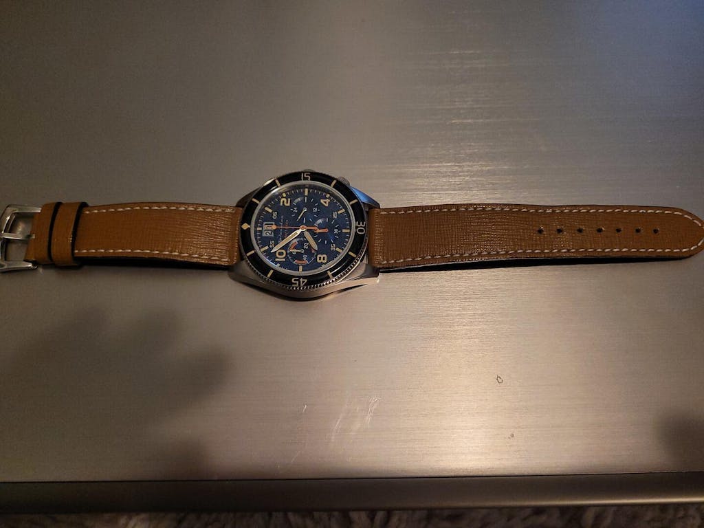 Il Saffiano marrone scuro con cuciture discrete funziona per orologi sportivi?