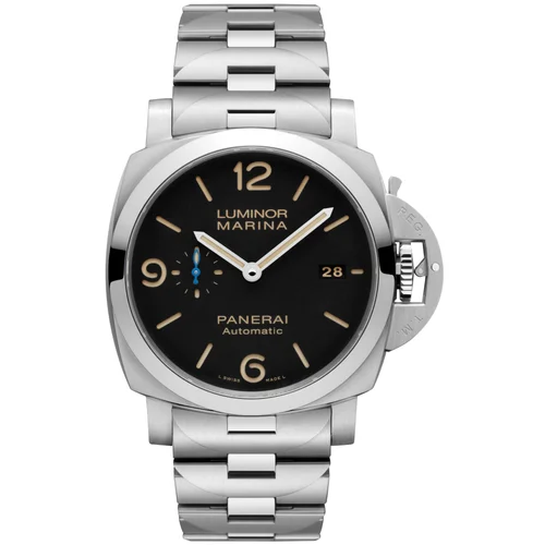Le specifiche tecniche del PAM00723 confermano il posizionamento professionale del modello. La cassa da 44 millimetri in acciaio inossidabile dispone di una lunetta fissa senza rotazione, una soluzione che predilige la leggibilità al multifunzionalismo. Il movimento che anima il quadrante è il calibro Panerai P.9010, un movimento automatico in-house con carica a molla di grossa capacità, dotato di scappamento a ancora e oscillatore a bilanciere libero. Il quadrante propone ore, minuti, piccoli secondi su sottoquadrante posizionato a ore 9 e data a ore 3, tutte informazioni lette con nitidezza dal vetro zaffiro bombato che ha una cupola caratteristica. La profondità di immersione raggiunge i 300 metri, una specifica che non è dichiarata per uso ricreativo bensì per attestare la solidità costruttiva della gabbia in acciaio e della camera stagna del movimento.