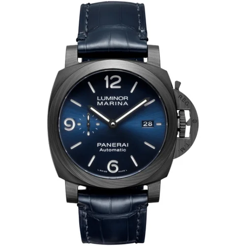 Le specifiche tecniche raccontano una storia di precisione calibrata. Il diametro della cassa è 44.00mm, dimensione scelta consapevolmente per assicurare visibilità anche con muta esplorativa; il movimento interno è il Panerai caliber P.9010, meccanismo a carica automatica che gestisce ore, minuti, piccoli secondi e data con la semplicità tipica dei cronografi militari. La profondità di immersione raggiunge i 300 metri, parametro che certifica la sigillatura delle anse e la coesione tra cassa e cinturino. L'ansa, elemento spesso trascurato, misura esattamente 24mm di larghezza—una dimensione che riflette le proporzioni canoniche del Luminor, dove il rapporto tra il diametro della cassa e lo spessore della cinghia deve mantenersi in equilibrio visivo. Il titanio Grade 2 utilizzato per la corona e i componenti strutturali offre una densità inferiore all'acciaio inossidabile a parità di resistenza, dettaglio che i sommozzatori professionisti apprezzano dopo ore di immersione.