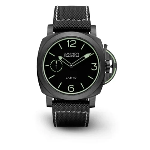 Sotto la lunetta, il calibro Panerai P.3001/C batte con una regolarità meccanica che appartiene solo agli orologi concepiti per durare decenni. La riserva di carica è indicata dal quadrante centrale, una soluzione tecnica che permette al portatore di gestire l'autonomia con precisione militare. Il movimento, visibile attraverso il fondello in cristallo di zaffiro, rivela i 21 rubini che scandiscono i secondi frazionati in un piccolo quadrante decentrato. La scelta del titanio associata al carbonio non è casuale: il titanio riduce il peso senza sacrificare la robustezza, il carbonio assorbe gli urti come una armatura molecolare. La resistenza all'acqua raggiunge i 300 metri, sufficienti per immersioni ricreative ma soprattutto garanzia di un sigillo che non fluttua.