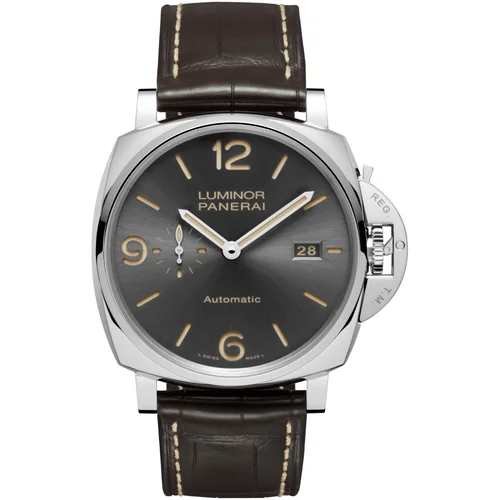 Il Panerai Luminor Due PAM00943 rappresenta l'evoluzione contemporanea di un'icona che ha definito il linguaggio degli orologi da strumento nel corso di sette decenni. Lanciato nel 2017 come reinterpretazione del Luminor originale, il Due si distingue per la sua geometria sottile e raffinata rispetto ai modelli Submersible più massicci. La cassa da 45mm in acciaio inossidabile mantiene le proporzioni iconiche del Luminor, grazie alla nuova architettura del movimento interno che consente uno spessore contenuto a 10,50mm, conferendo al polso una presenza elegante senza sacrificare la robustezza strutturale. Questa versione PAM00943 evolve il concetto di strumento militare nato nei laboratori di Firenze, trasformandolo in un compagno quotidiano che parla il linguaggio della sartoria orologiera moderna, dove la funzione si incurva verso l'estetica senza tradire la sostanza.