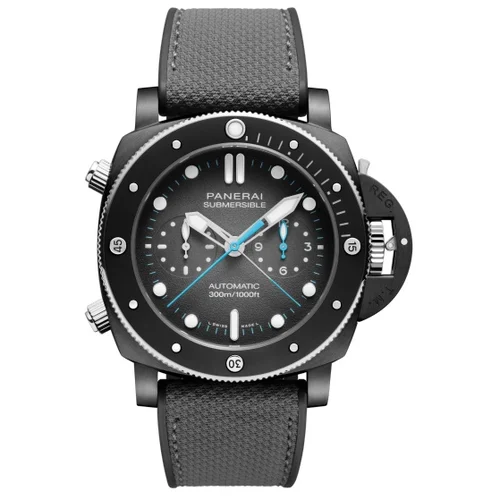Il Panerai Submersible PAM01208 rappresenta l'evoluzione contemporanea della vocazione subacquea paneristica, fedele all'eredità nata dalla collaborazione con la Marina Militare Italiana degli anni Quaranta. Questo cronografo da 47 millimetri non è una semplice evoluzione estetica: incarna la filosofia costruttiva di Officine Panerai attraverso proporzioni aggressive, superfici sagomate e una presenza ingombrante che comunica immediatamente competenza tecnica. A differenza dei Submersible entry-level, il PAM01208 dosifica la brutalità del design con raffinatezza costruttiva, evitando il cliché dello "strumento da polso gigantesco" privo di motivazione funzionale. La cassa in titanio Grade 5, materiale aeronautico per eccellenza, riduce il peso percepito pur mantenendo rigidità strutturale: essenziale per chi indossa cronografi massicci in contesti professionali. La spalla smussata della cassa, la lunetta unidirezionale zigrinata e la corona a vite posizionata ore tre rivelano una gerarchia progettuale dove ogni elemento serve uno scopo preciso, mai puramente decorativo.