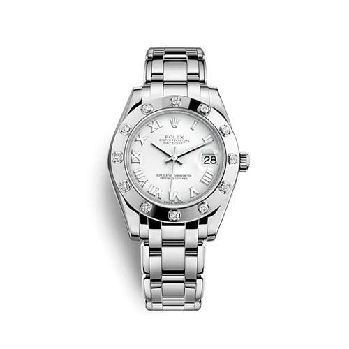 Il Rolex Pearlmaster 81319 occupa una posizione singolare nell'universo orologiero della Maison di Corona: non è semplicemente un orologio prezioso, è un oggetto di haute joaillerie che porta con sé decenni di expertise metallurgica e gemmologica. Nato nel 1992 come risposta di Rolex alla crescente domanda di segnatempo pensati specificamente per la donna esigente, il Pearlmaster ha saputo ritagliarsi un'identità autonoma, distinta dal Datejust da cui trae ispirazione strutturale. Il riferimento 81319, in oro bianco 18 carati con cassa da 34mm, rappresenta la versione più iconica di questa famiglia: una reinterpretazione contemporanea del femminile di lusso che rifiuta categoricamente qualsiasi compromesso estetico o costruttivo. A differenza dei modelli sportivi Rolex, il Pearlmaster non insegue la versatilità: è un orologio che sussurra, che comunica attraverso proporzioni raffinate e materiali pregiati, pensato per il polso che conosce la differenza tra prezioso e ordinario.