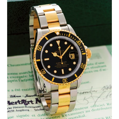 Il Rolex Submariner 16613 Black Tritium rappresenta uno dei capitoli più affascinanti nella storia dell'orologeria da immersione: il momento in cui Rolex ha osato ibridare la strumentalità diving con l'eleganza dell'oro giallo a 18 carati. Prodotto tra la fine degli anni Ottanta e i primi Duemila, questo riferimento incarna una filosofia costruttiva oggi sempre più rara — non nasce da compromessi, ma da scelte consapevoli. La cassa bicolore, le sfere luminate al tritio, quel quadrante nero lucido che cattura la luce sotto il plexiglass bombato: ogni elemento racconta una ricerca di equilibrio tra prestazione strumentale e presenzialità estetica che definisce ancora oggi lo standard di lusso sportivo.